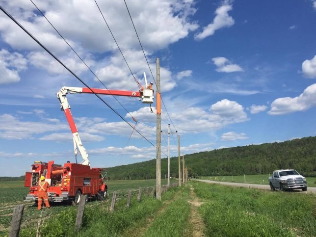 Pole implantation and anchors for Hydro-Quebec in the Ville-Marie sector of the Temiscamingue region.
