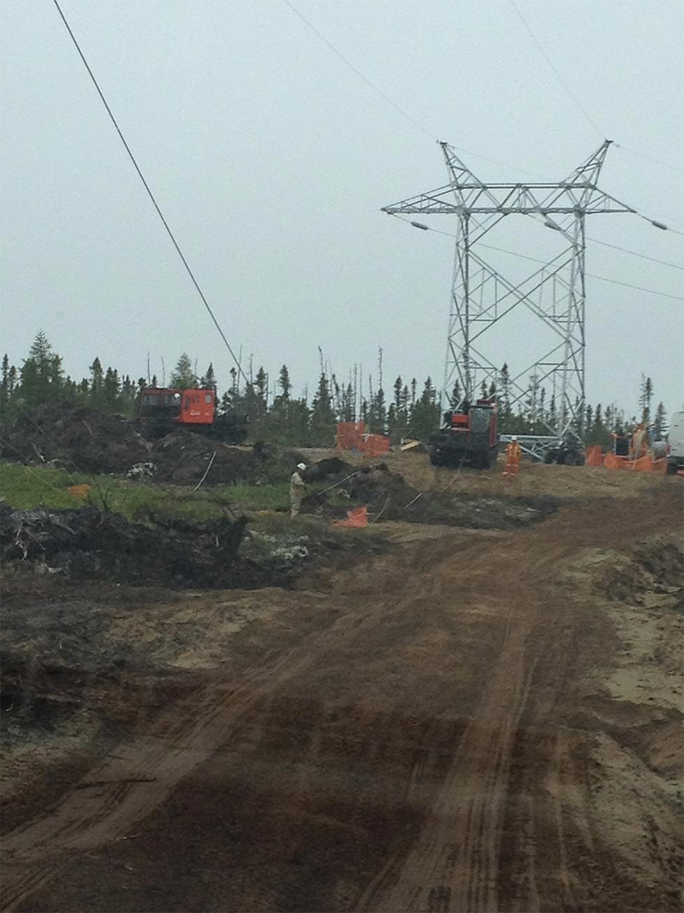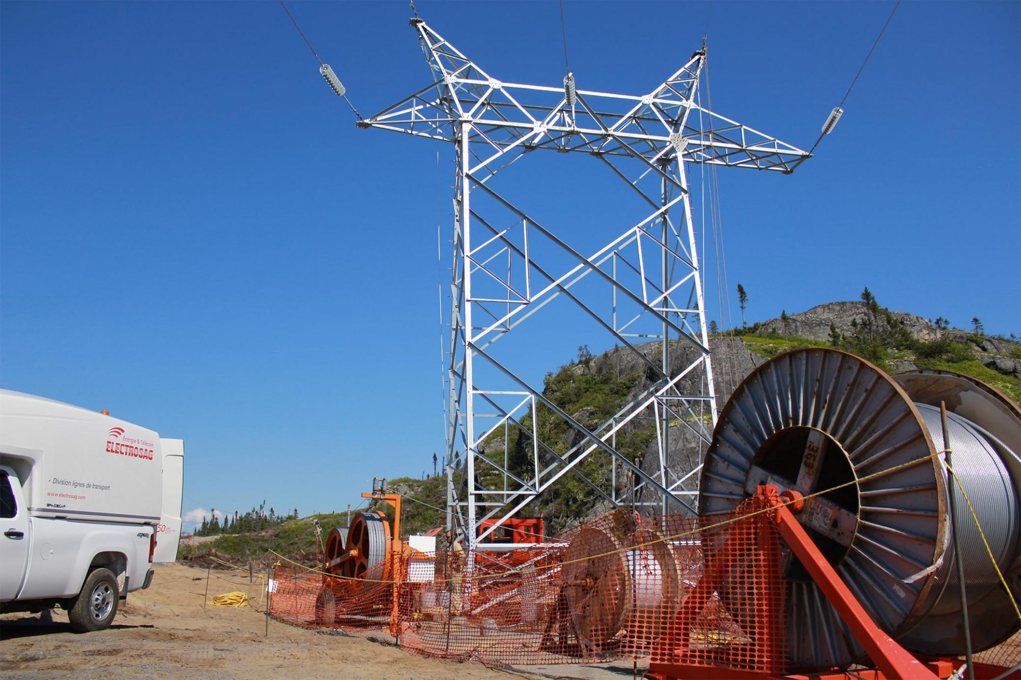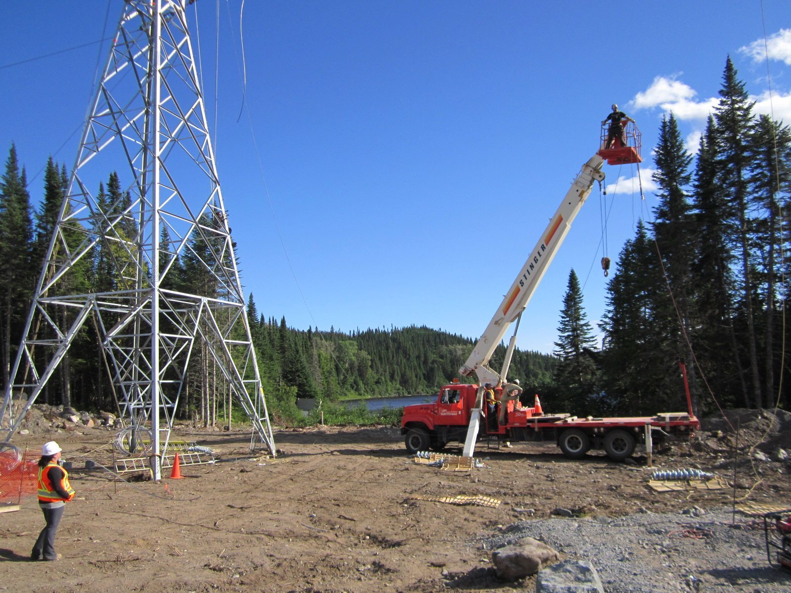 Construction d’une ligne à 161 KV pour Hydro-Québec en 2012 avec portiques de bois et pylônes d’acier sur 3 KM à Courbe du Sault près de Sheldrake, Côte-Nord. Valeur $3M-$4M.